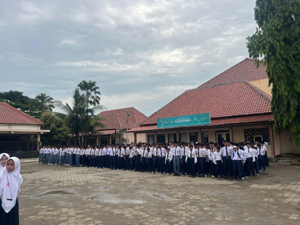 Songgom, 10 November 2025 – Dalam rangka memperingati Hari Pahlawan Nasional, Pondok Pesantren Modern Al Falah menyelenggarakan upacara bendera di lapangan basket putri Al Falah. Upacara dimulai pada pukul 07.30 WIB dan diikuti oleh seluruh santri, dewan guru serta ustadz-ustadzah dengan penuh khidmat dan semangat kebangsaan.
